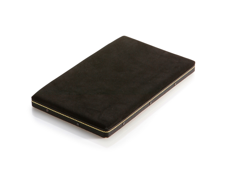 Bladgoudkussen zonder windkap en de lederen bandjes aan de onderzijde. Het kussen is perfect inzetbaar voor het verwerken van eetbaar goud in losse stukken