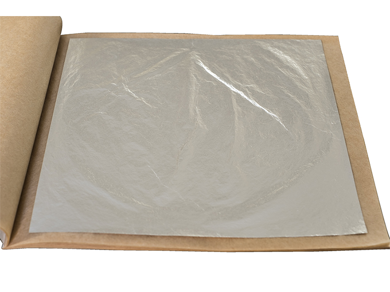 Echt emaillier zilverfolie, te bakken tot maximaal 810 °C per blad. 130 x 130 mm, á  0,3 gram per blad.