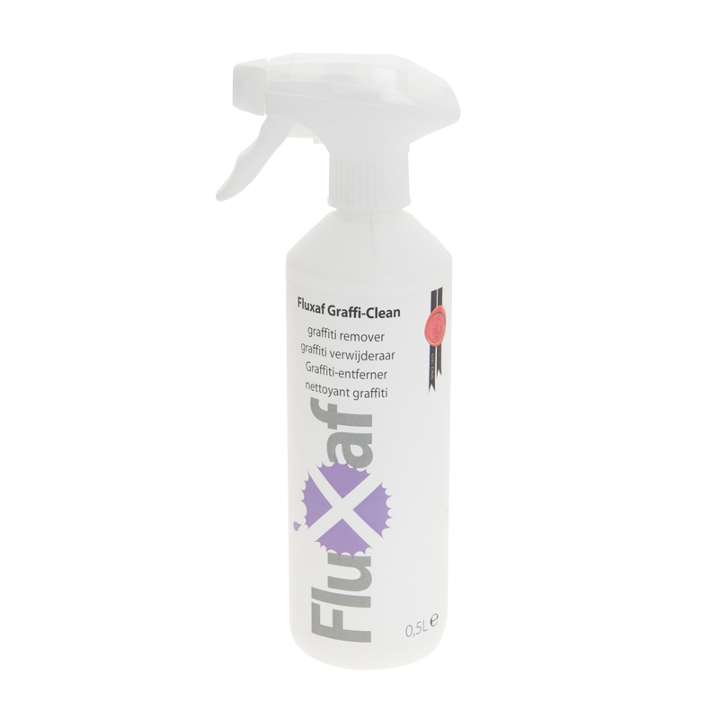 Fluxaf Graffi Clean is een absoluut veilige, dunne, pH-neutrale en waterafwasbare Graffiti-verwijderaar op waterbasis. Hij is geschikt voor het in één stap verwijderen van de meest voorkomende soorten graffiti, viltstift, kauwgom en vele andere ongewenste verontreinigingen van vrijwel alle ondergronden. Hij bevat geen zuren of logen, geen NMP en geen biociden of conserveringsmiddelen.