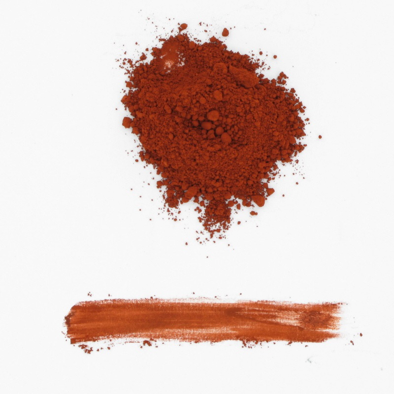 Wordt bereid door natuurlijke siena te gloeien in speciale ovens. Hierbij gaat de gele kleur over naar een mooie, warme rood bruine kleur. Kan overal mee worden gemengd. Is hittebestendig.