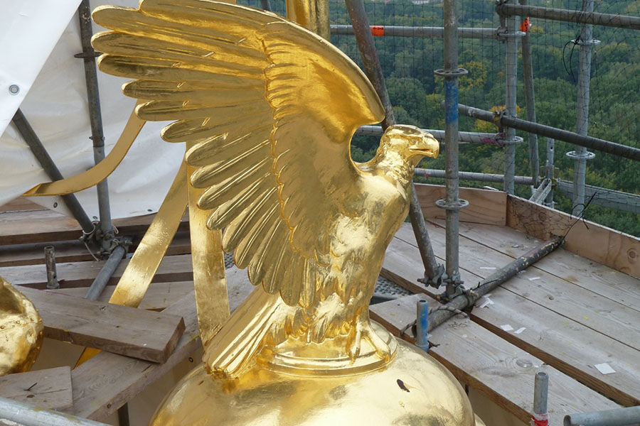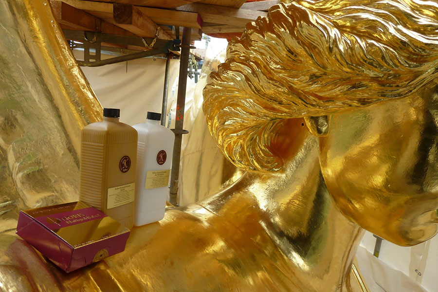 Het heeft echt geen zin om goedkoper bladgoud buiten te verwerken. De vergulding zal minder lang stand houden, het is zonde van uw werk. Besparen dus, door dikker bladgoud te gebruiken. Overigens hebben we al 27 jaar ervaring met het Noris bladgoud op vele objecten in de buitenlucht, van groot tot klein, hekpunt, windvaan, torenhaan, monumenten, kunstwerken enz. Het dubbel torengoud met platina van Noris is het beste bladgoud.