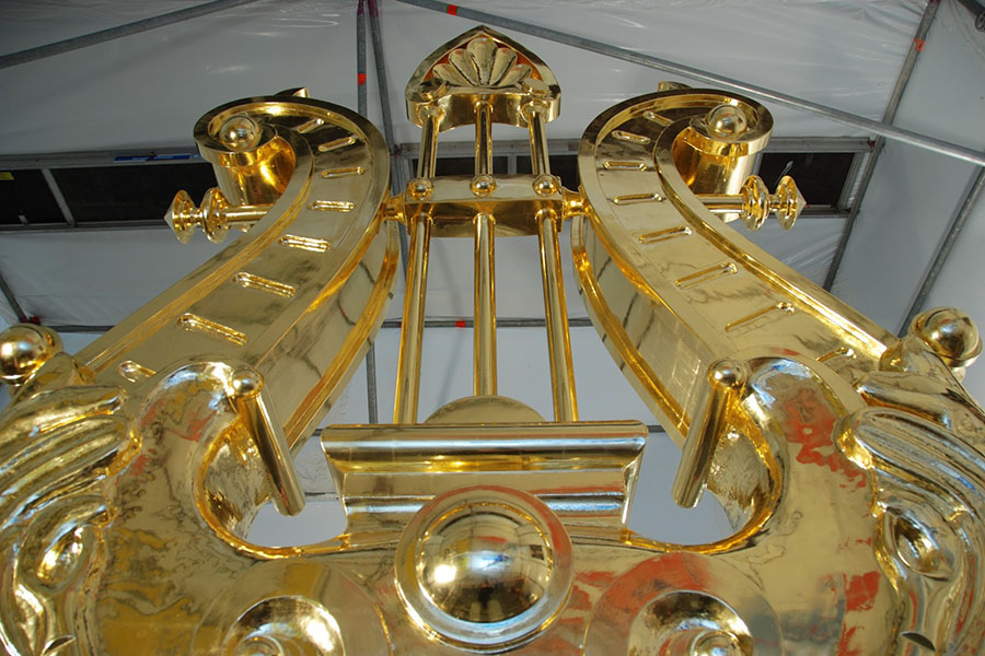 Het is een misvatting om te denken dat bladgoud met een laagje vernis het buiten langer uithoudt dan bladgoud zonder vernis. Immers de levensduur van goud is veel langer dan van een vernis die toch enkele jaren onderhouden zal moeten worden. Dus voor buiten nooit vernis toepassen enkel bij uitzonderlijk omstandigheden. Het betreft dan een vergulding die aan uitzonderlijke omstandigheden wordt blootgesteld. Bijvoorbeeld zout zeewater of een fontein waarbij het water constant over het bladgoud heen loopt, een object waar mensen aanzitten of op klimmen enz. Ook bepaalde omstandigheden kunnen leiden tot een afwijkend advies van een normale vergulding bijvoorbeeld een object op of aan het strand. Denk hierbij aan het schuren van het zand dat door de wind wordt meegenomen. Mos, algen en ammoniak (vee) zijn ook niet bevorderlijk voor de levensduur van een vergulding. We hebben bij Linova inmiddels zeer veel ervaring met allerlei omstandigheden. Als u twijfelt en denkt dat uw vergulde object buiten toch extra beschermt dient te worden vraag dan bij ons een advies aan.